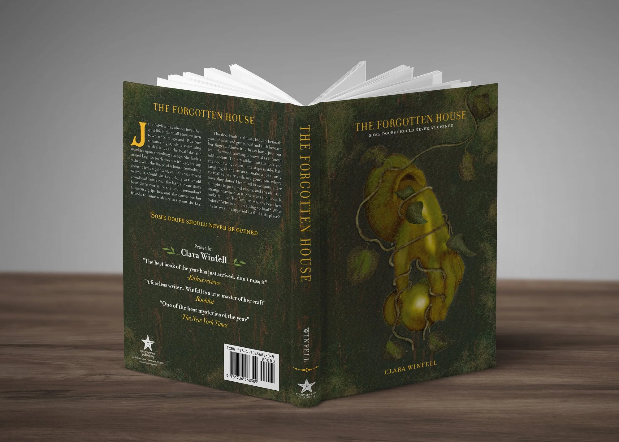 The Forgotten House is a story about a young woman who discovers unsettling secrets after finding a mysterious key by a lake. Each book design explores a different visual tone and sense of unease through typography, color, and composition.